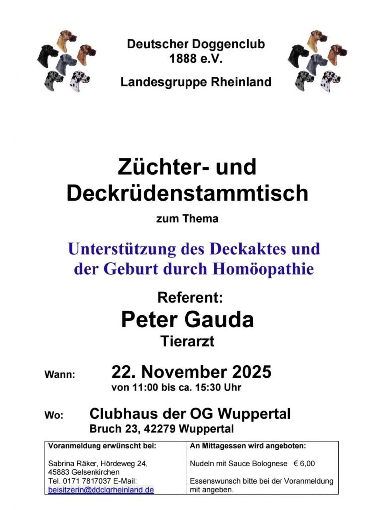 Hier finden Sie die Internetpräsenz der Landesgruppe Rheinland im Deutscher Doggen Club (DDC) 1888 e.V.